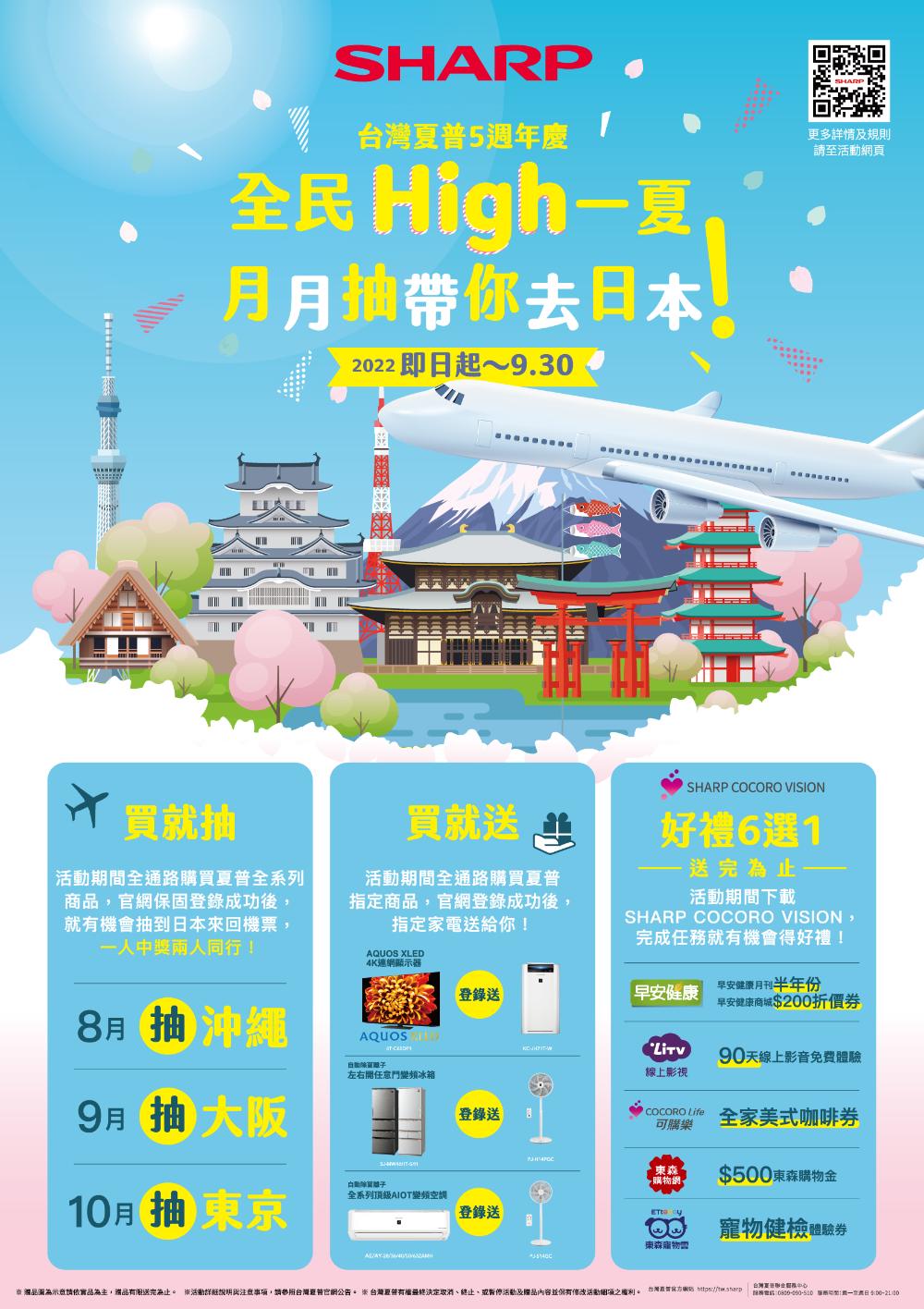 2022-07-06 全民High一夏 買SHARP家電月月抽日本雙人機票