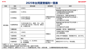 2025年台灣夏普福利一覽表 公告 20250310